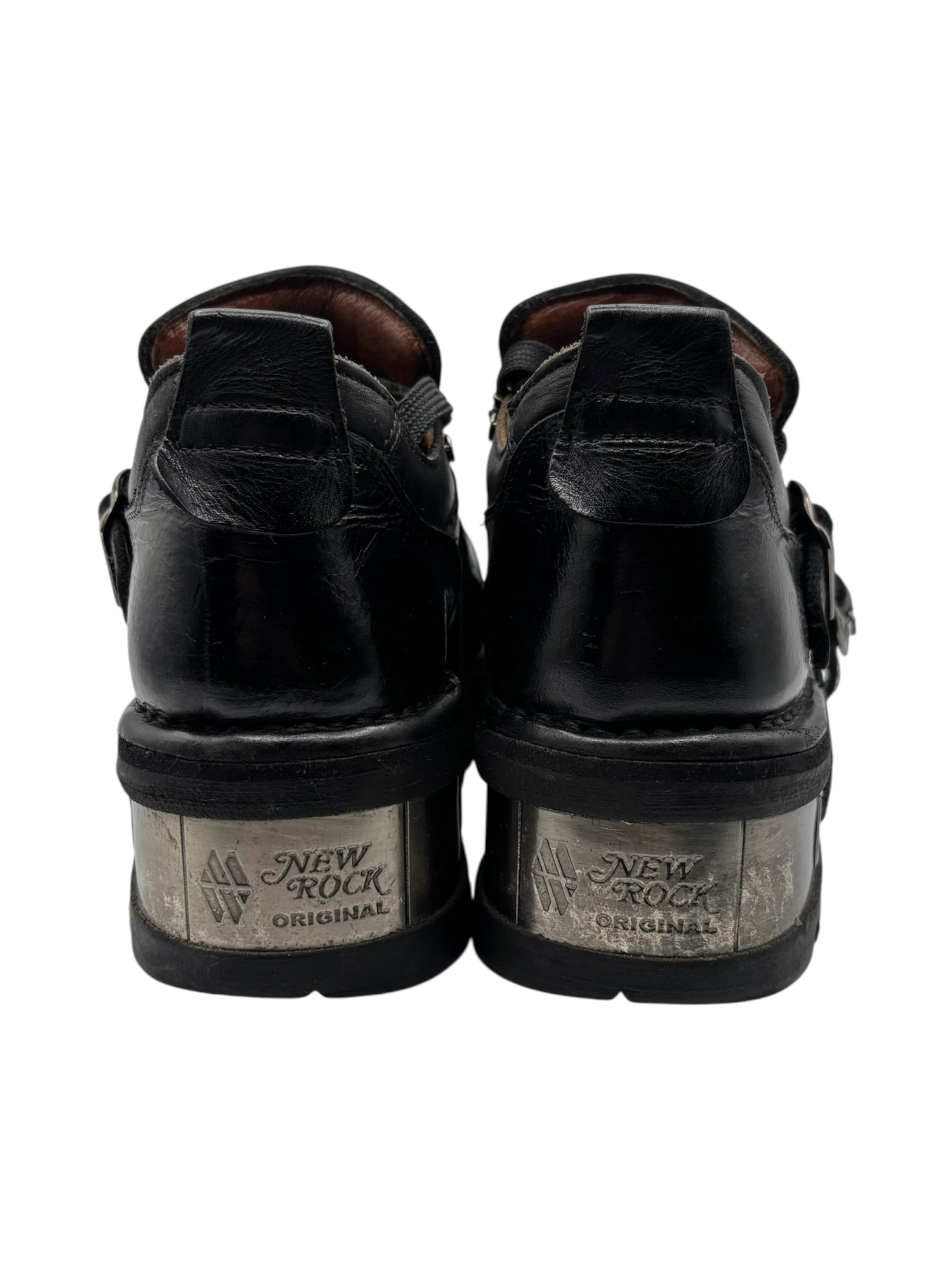Vintage New Rock buckled raised-heel leather boots